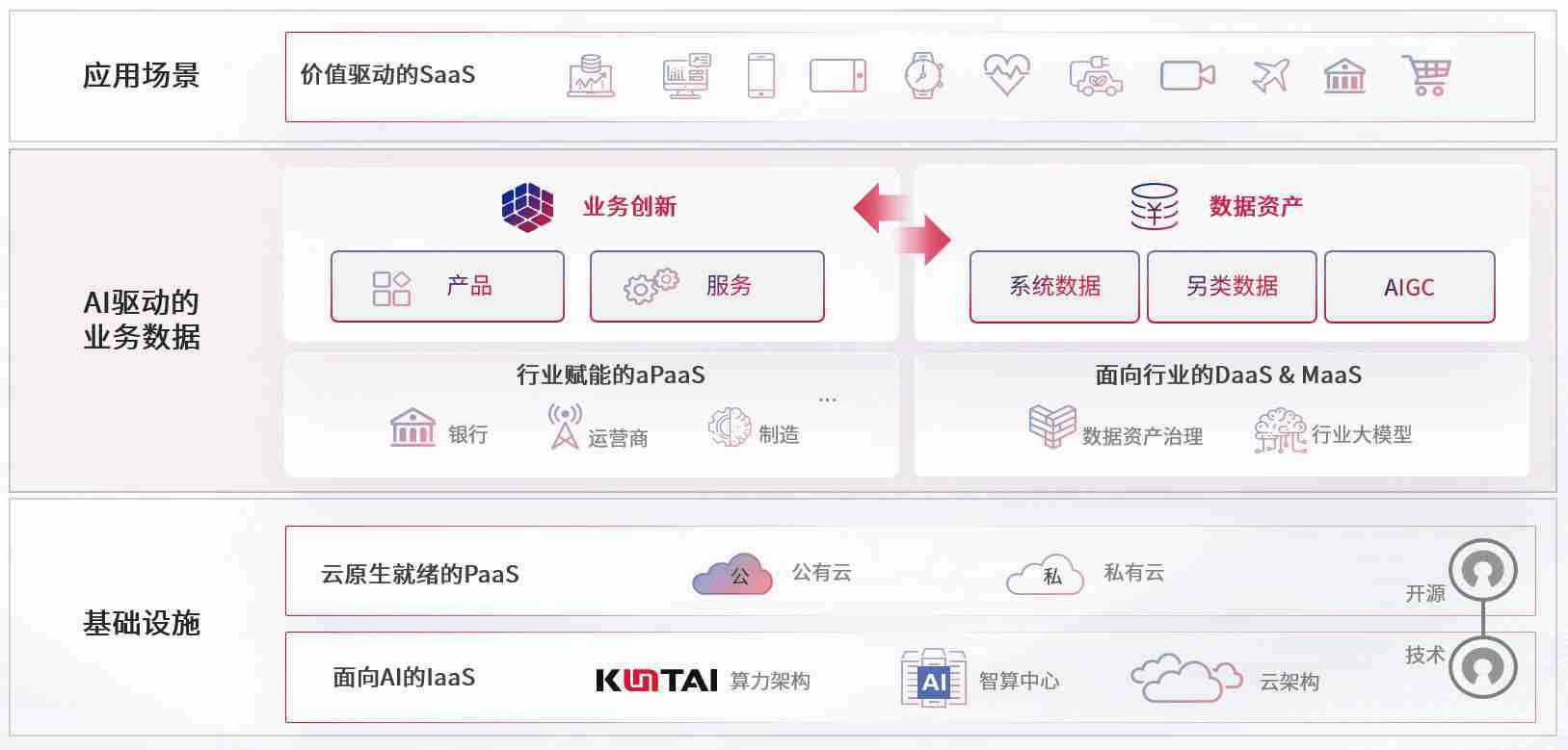 数字时代,,,围绕企业数字化转型的关键要素,,Z6尊龙数码开创性的提出数云融合战略和技术体系框架,,,,着力在云原生、、数字原生、、AI原生和信创产业上架构产品和服务能力,,为处在不同数字化转型阶段的快消零售、、、汽车、、、、金融、、、、医疗、、、政企、、、、教育、、、、运营商等行业客户提供泛在的敏捷IT能力和融合的数据驱动能力,,构建跨界融合创新的数字业务场景和新业务模式,,助力企业级客户建立面向未来的核心能力和竞争优势,,,,全面推动社会的数字化、、、、智能化转型升级。。。
